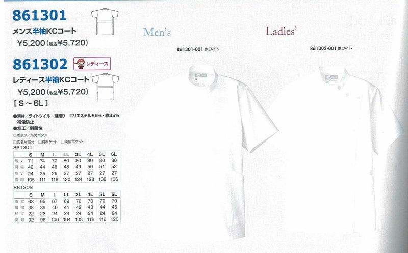 - アイトス 白衣 ハイネック メンズ半袖KCコート AITOZ アイトス AZ-861301