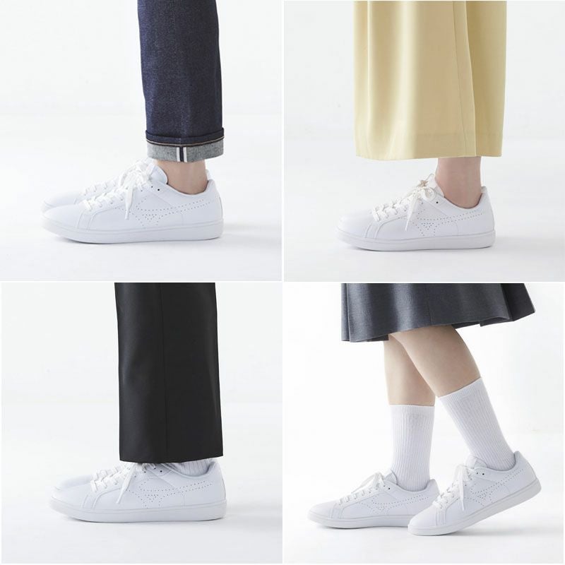 シンプルなデザインで様々なスタイルに合い、また人工皮革で、どんなシーンでも履きやすく気軽に使いやすい。サイズ展開も豊富。日本人の足にあったゆったり設計。軽量でクッション性があるカジュアルタイプのコートスニーカー。