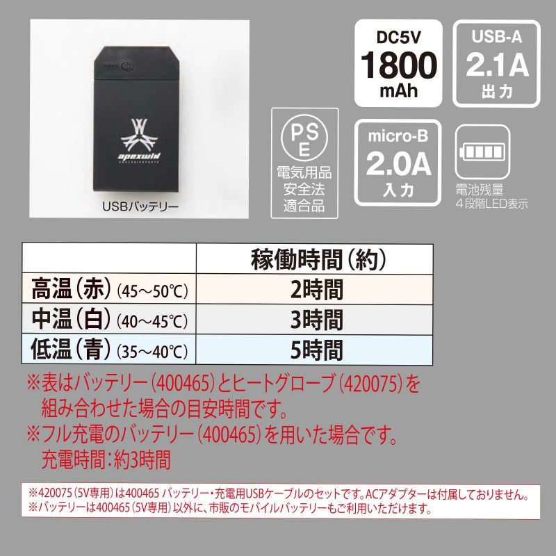 - アタックベース 420075 ヒーターグローブ防水防寒手袋 バッテリーセット