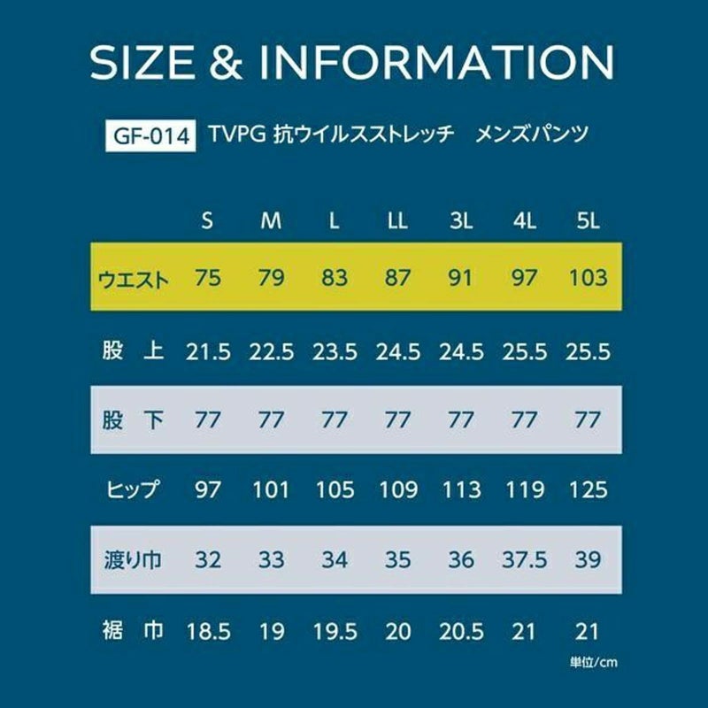 5. Gush Force 【TVPG抗ウイルス】メンズワークスーツ ストレッチパンツ 当店限定オリジナル ガッシュフォース GF-014