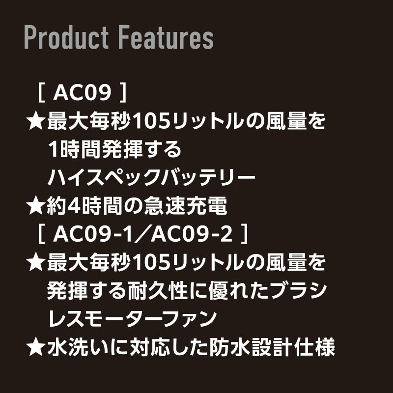 - バートル [夏] エアークラフト AC09シリーズ 2025年モデルリチウムイオンバッテリー&ファンユニットセット