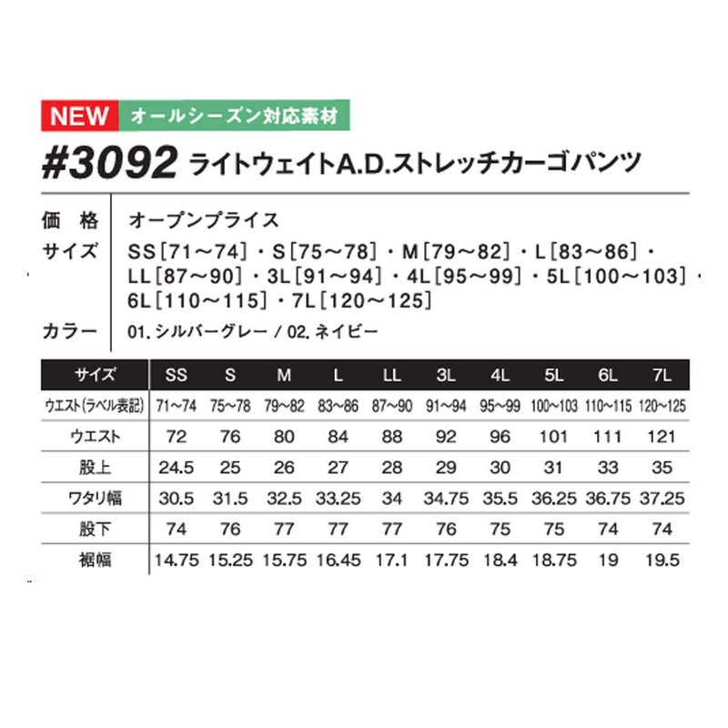 アイズフロンティア [秋冬]#3092 ライトウエイトA.D.ストレッチカーゴパンツ