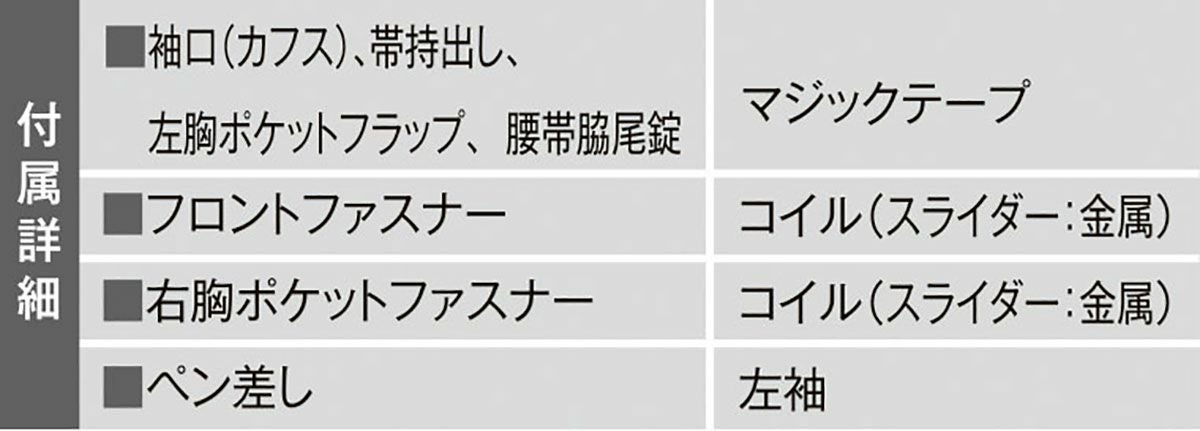 フロントファスナーと胸ポケットが隠れています。さりげないストライプが人気の商品。