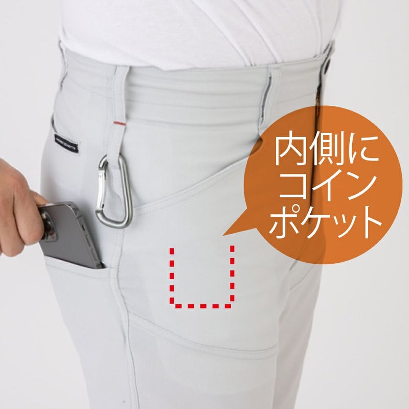 ●股部分はアクティブな動きでも突っ張りにくく、丈夫で裂けにくいクライミングカット仕様