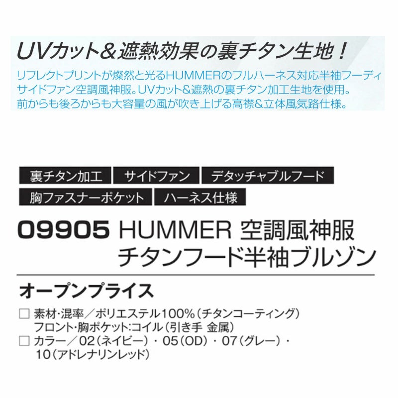 - アタックベース [春夏] HUMMER 空調風神服 チタンフード半袖 09905
