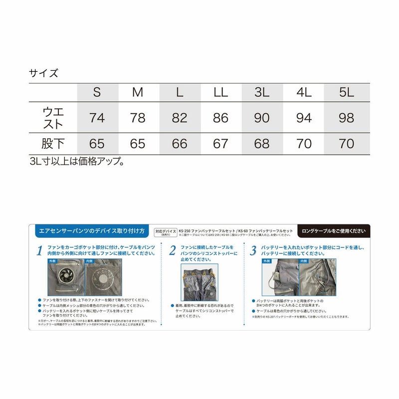 - クロダルマ [春夏] エアーセンサーパンツ 35895 【※別売 KS-259ロングケーブルを必ずご使用ください。】