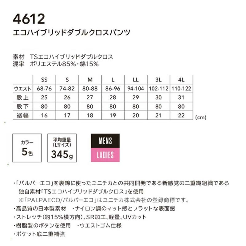 - TSDESIGN [秋冬]4612 エコハイブリッドダブルクロスパンツ