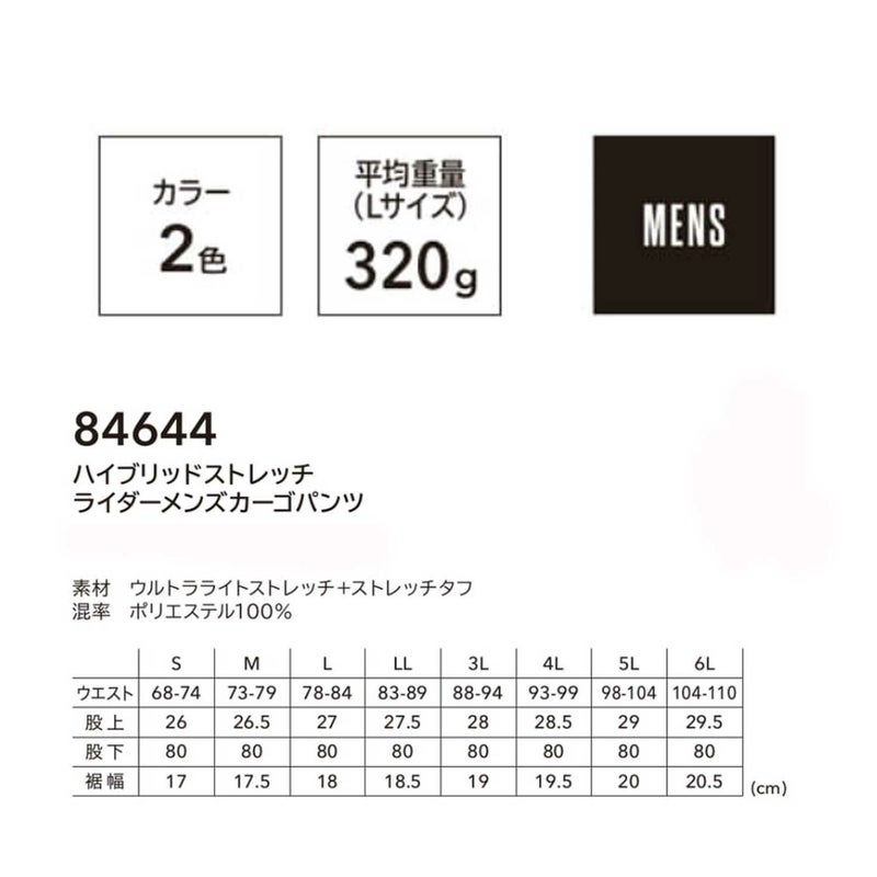 - TSDESIGN [通年]無重力ゾーン ハイブリッドストレッチライダーメンズカーゴパンツ 84644