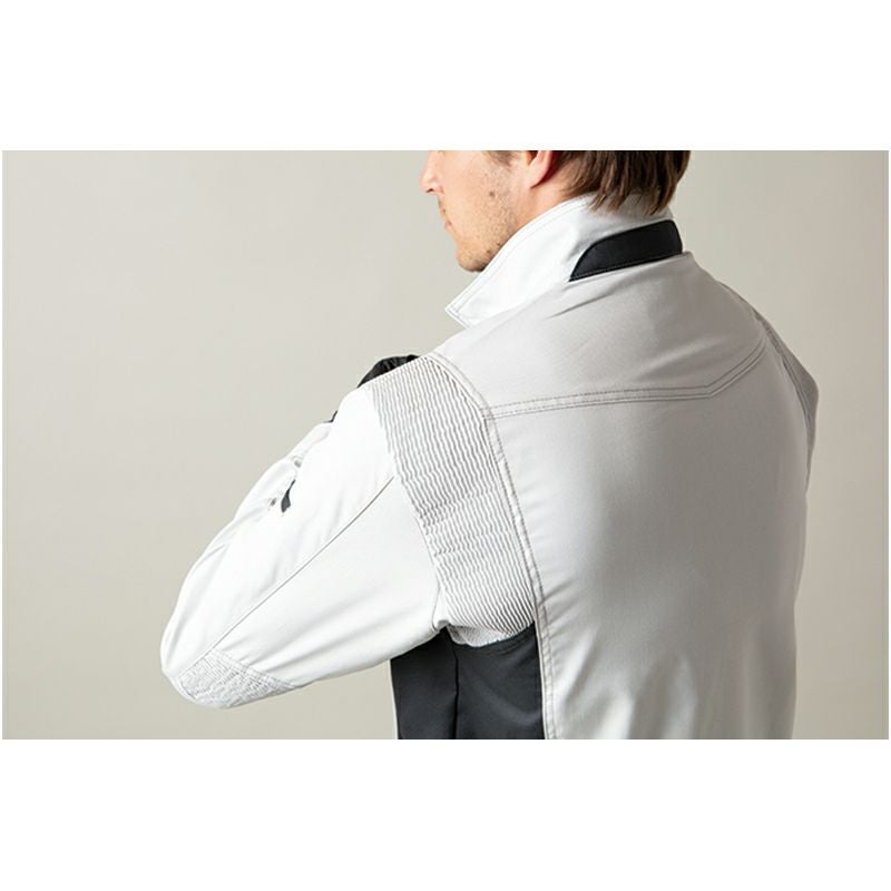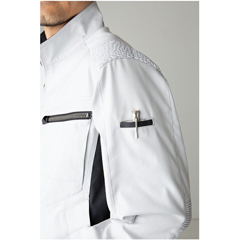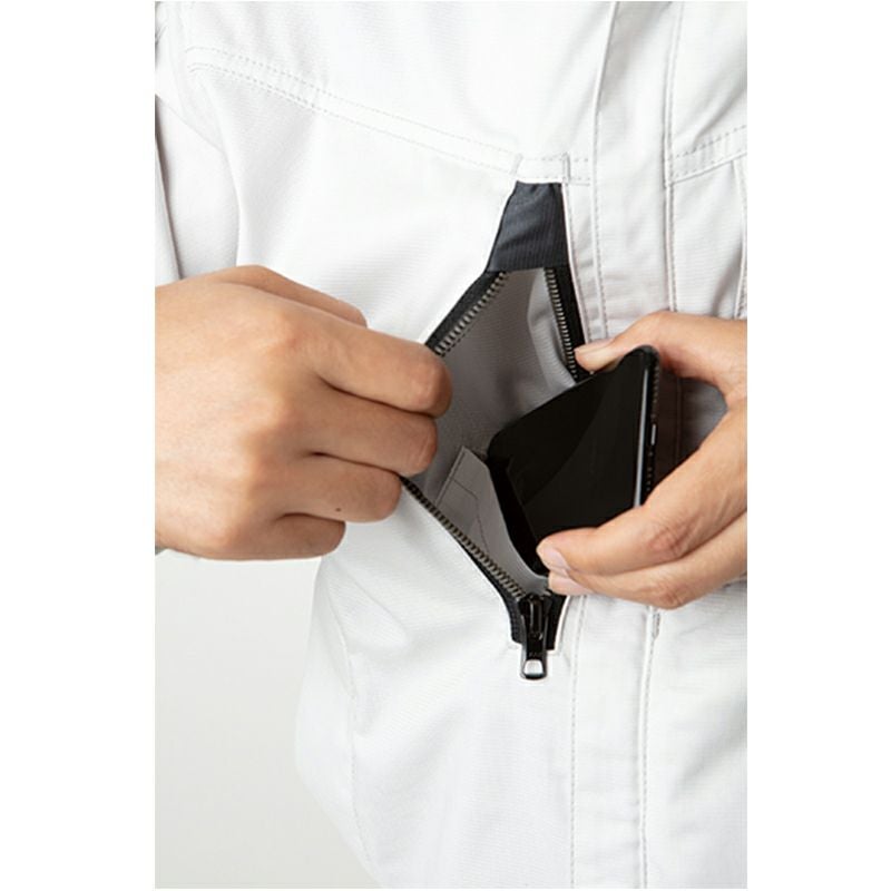 フルハーネス装着時にも新設計のエクスパンションパーツが、かつてない快適な機動性をサポート。縦型ポケットや両脇ファスナーポケットなど「滑落制止用器具」との整合性も考慮した機能的なデザインとなっています。また逆開ファスナー仕様になっており、腰道具ベルトを使用しても窮屈感が軽減されます。建設以外の製造:運搬といった動作が要求される現場でも機能性が十分に発揮されます。