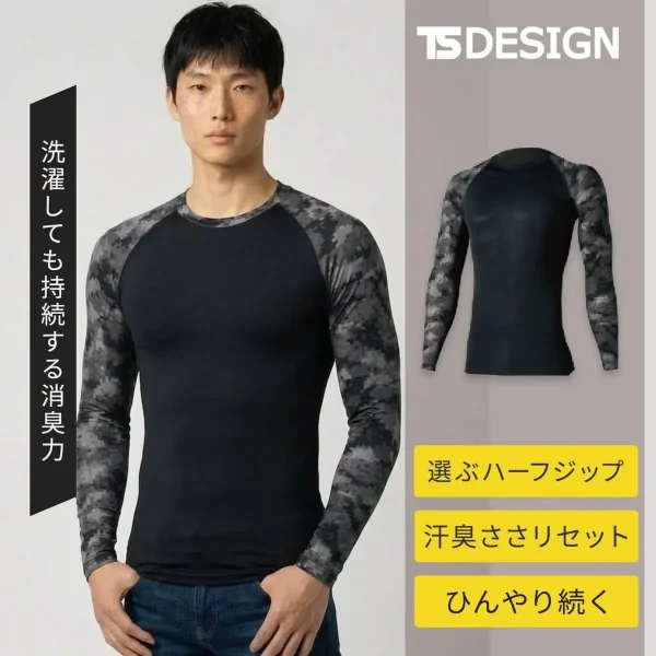 「マイナス10℃」の快適さが魅力。熱を遮る特殊プリントと、風が通り抜けるメッシュ構造が異次元の涼しさを実現しました。特筆すべきは、糸からニオイを断つ強力消臭「TS DEO」です。一日中汗をかく現場でも清潔感を保ち、洗濯しても効果が持続。UVカットも万全で、過酷な夏を「涼しく・清潔に」乗り切るための必須アイテムです。
