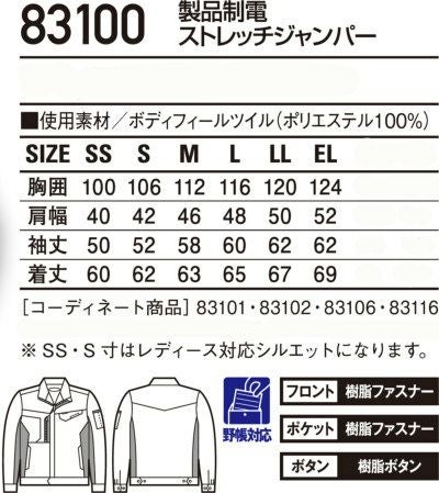 83100 自重堂 製品制電ストレッチ長袖ジャンパー