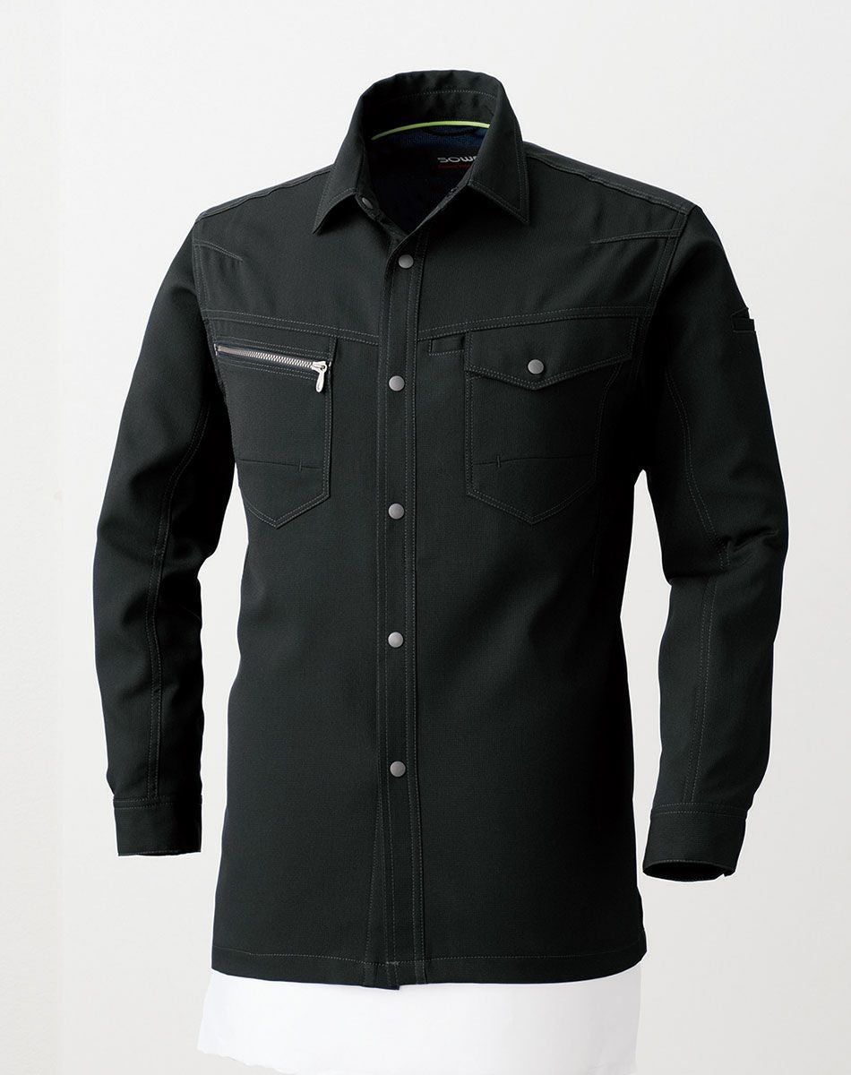 製品制電、ストレッチ、防汚加工を兼ね備えた高機能長袖ジャンパーです。